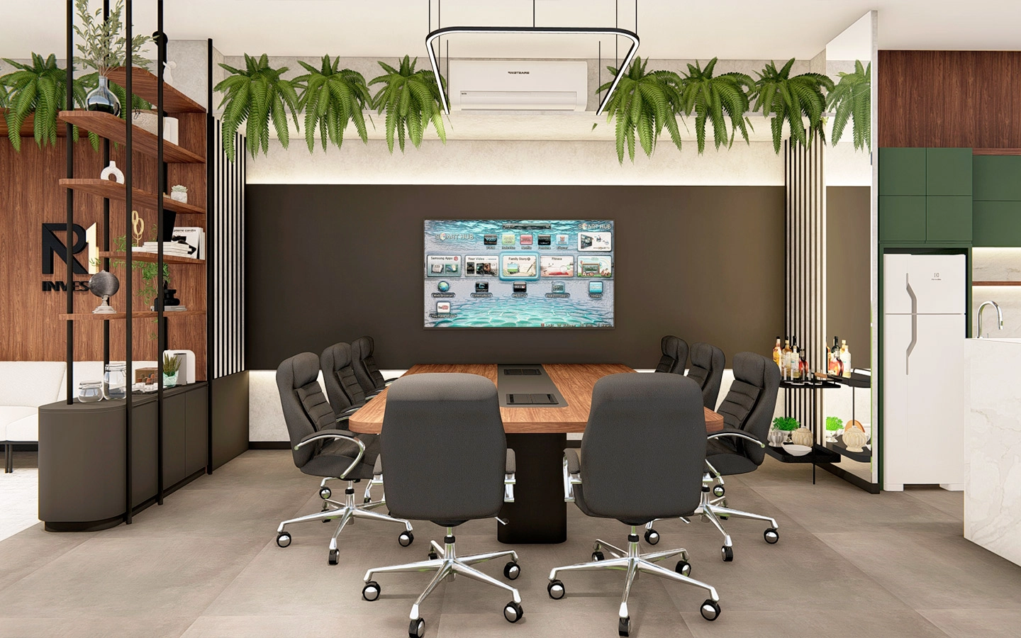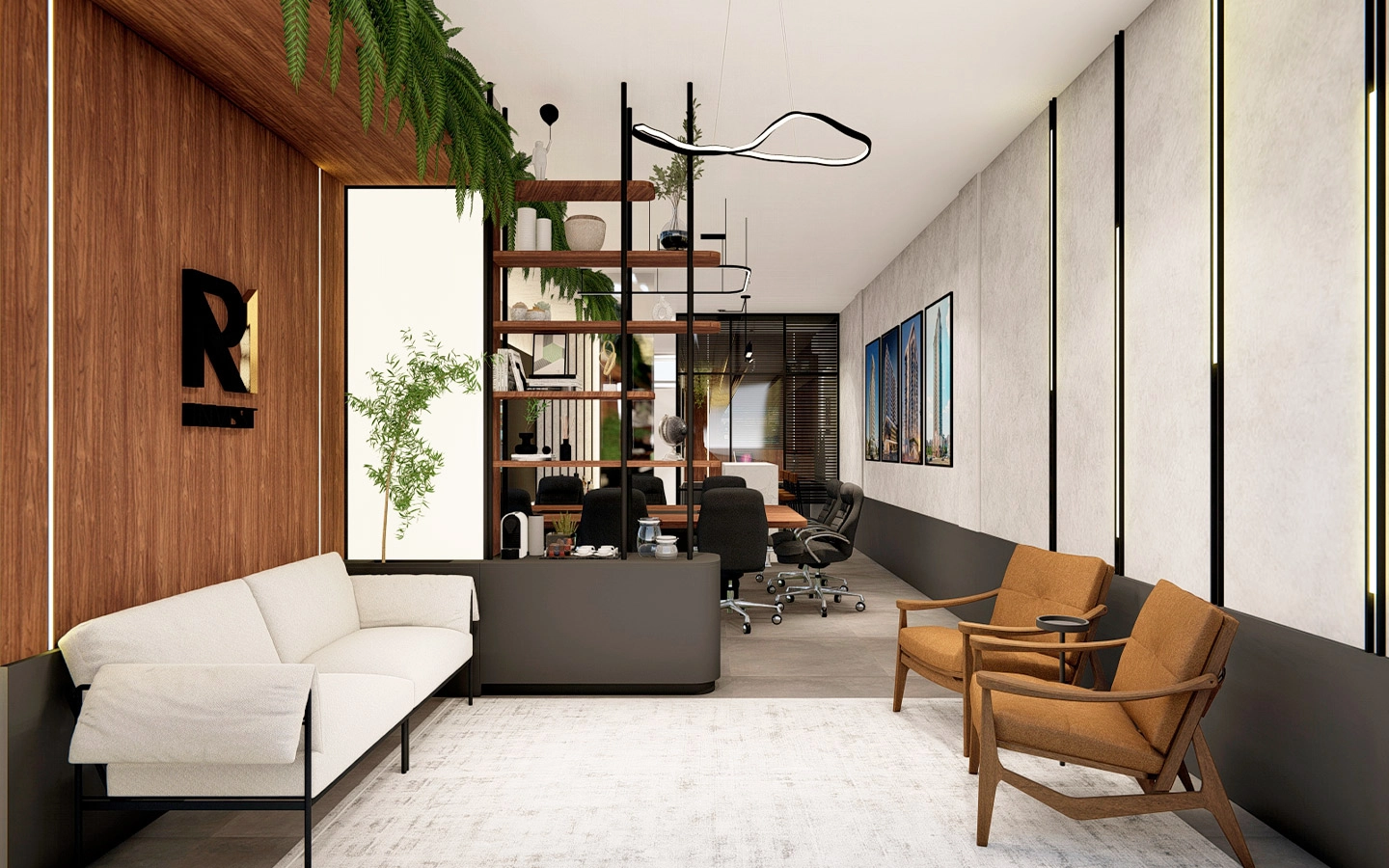Nosso principal objetivo foi criar um espaço onde os corretores se sentissem confortáveis e estimulados a trabalhar de maneira colaborativa, mas que, ao mesmo tempo, transmitisse aos clientes uma sensação de acolhimento e bem-estar. Queríamos que todos se sentissem em casa, em um ambiente que fosse tanto funcional quanto aconchegante.