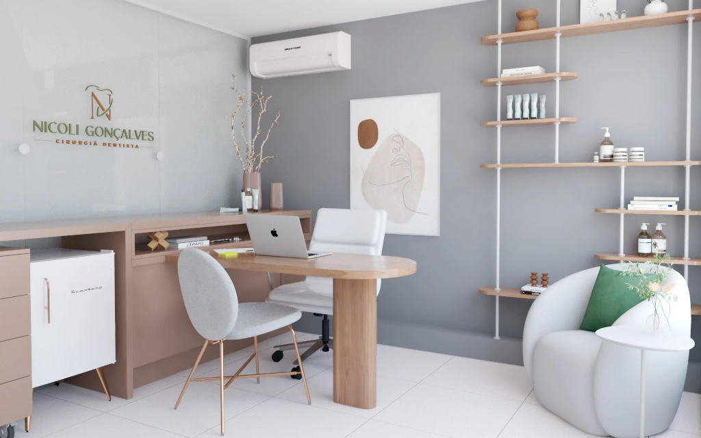 Projetado para uma profissional moderna e sofisticada, este consultório de biomedicina traduz, em cada detalhe, a essência de sua proprietária.