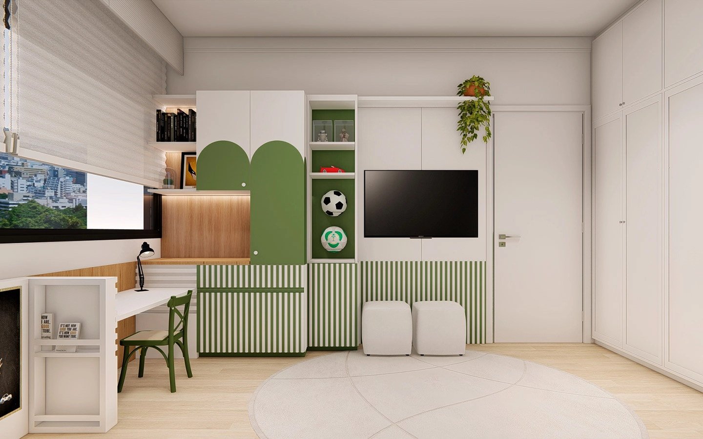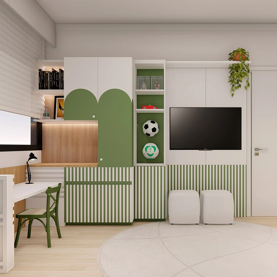 O nome deste projeto, "Refúgio 360", reflete a proposta de integração total do espaço, sem barreiras. Aqui, a convivência se torna o ponto central, com 360 graus de possibilidades para socializar, relaxar e criar boas memórias. O design foi cuidadosamente pensado para garantir que cada área fosse acessível e acolhedora, sem comprometer o conforto e a funcionalidade.