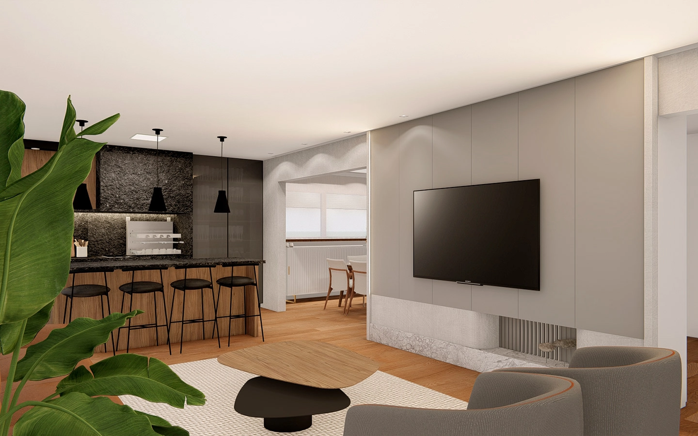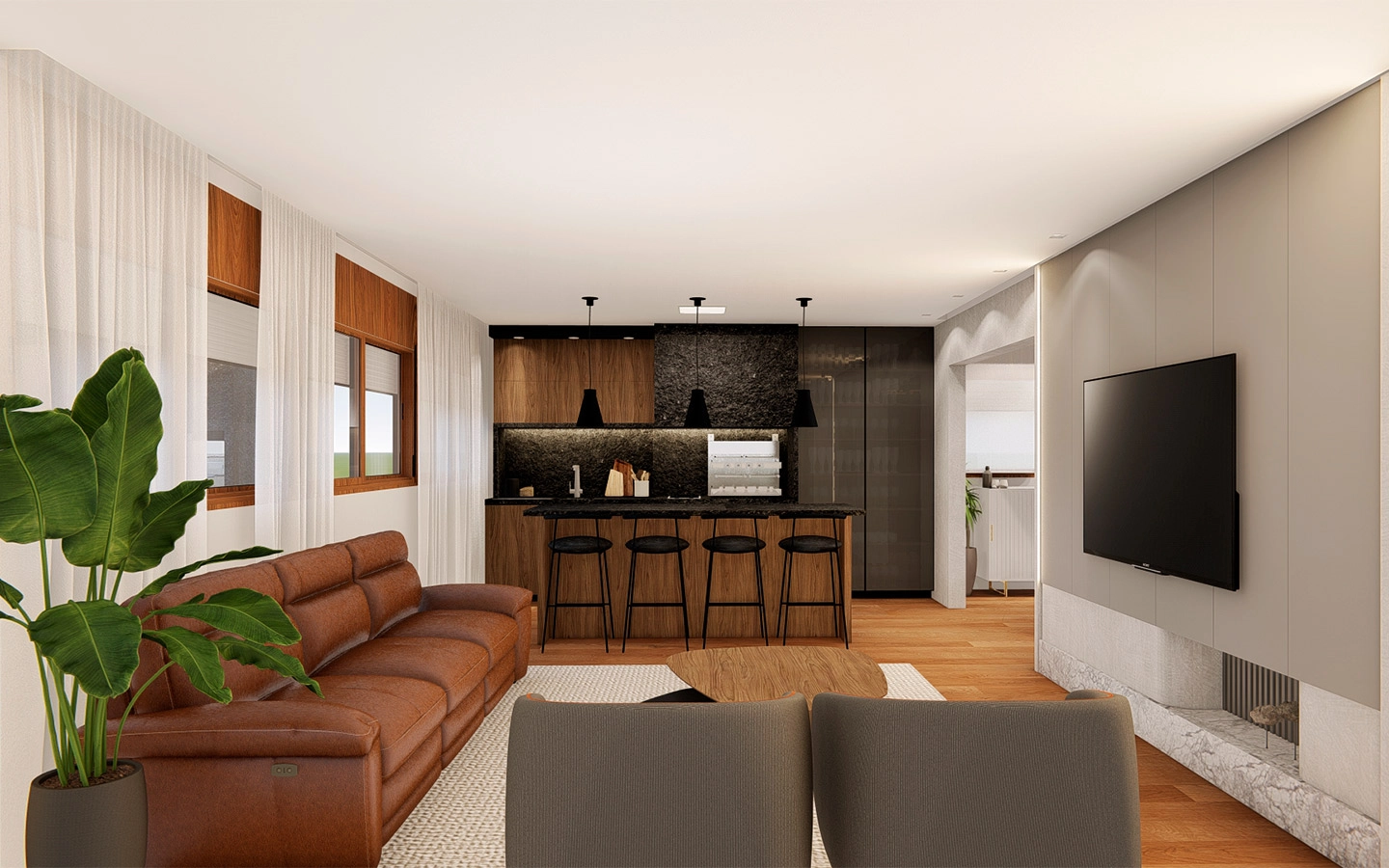 O pedido dos clientes era claro: criar um ambiente de convivência que fosse ao mesmo tempo elegante e prático, com um toque de charme para encontros e momentos especiais.